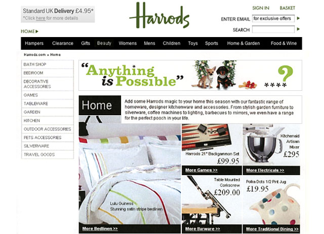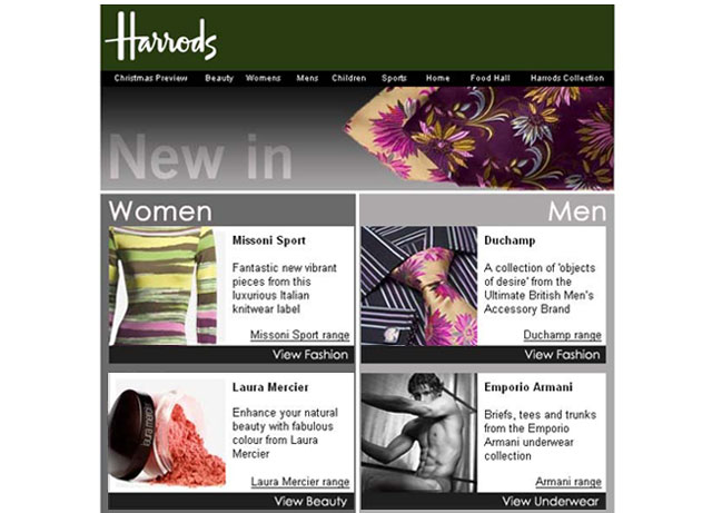 Outcome: Fantastic click-through rates and healthy sales. My redesign of the Harrods emails and banners saw online revenues double.