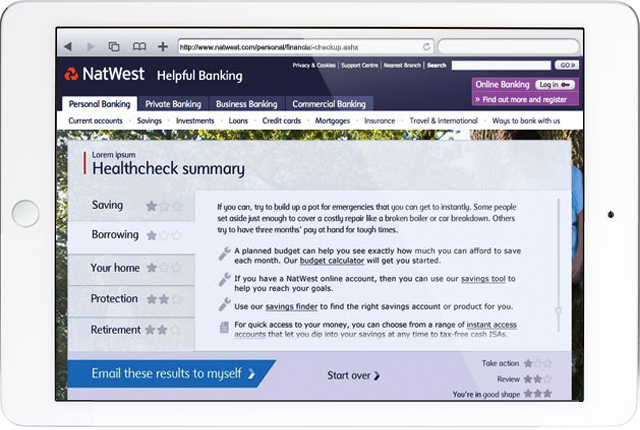 Approach: One of many NatWest/RBS projects I designed at Sapient. I worked with the client to develop this attractive and highly useful tool, I also conducted user testing.