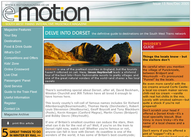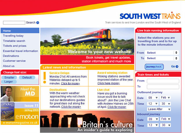 Outcome: An easy to use ticketing site with greatly increased levels of customer satisfaction. The magazine microsite won the APA's Online Publishing Solution Of The Year. 6 months later we won the project to similarly revamp GNER’s website. This won the Web User magazine Gold Award.